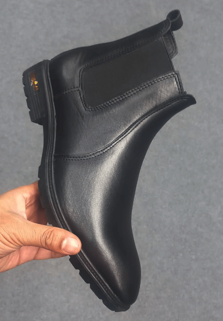 Premium leather meets everyday comfort in the Round Toe Side Elastic Chelsea Boot. Featuring a durable TPR sole and a classic slip-on design, it’s a versatile essential for casual and semi-formal wear.